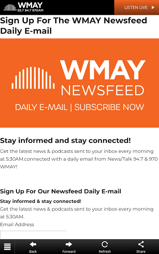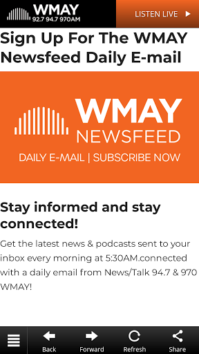 970 AM WMAY advertising reaches 5.59k visitors across desktop and mobile web, in countries such as . Pricing models they offer are CPM on channels such as Display, Mobile, Email, Social Advertising on 970 AM WMAY will allow you to reach consumers in industries or verticals such as .
