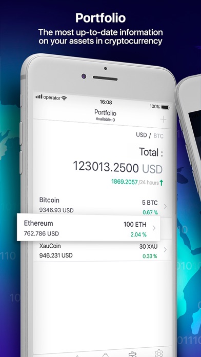 One of the main functions of the application is creating your own cryptocurrency briefcase, allowing you to track changes in real-time, based on the cryptocurrency exchange rates, in USD or in BTC. It's easy way to track cryptocurrencies prices, market cap, exchange markets, coin details and charts.