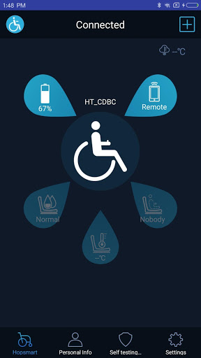 The Hopsmart app was created for a powerful electric wheelchair controller, it should co-working together with the controller via Bluetooth connection between controller and mobile phone or tablet which installed the app. The Hopsmart app also included a lot of great functions, with the controller paired successful, app can help user make a self testing to find the wheelchair abnormal status in order to ensure the electric wheelchair always safety and self testing processing with a beautiful animation. It can let user set up his/her medical card for any others who can provide helping. By App, user can use their cell phone or tablet as a remote controller to control the wheelchair, the available distance around 15 to 20 meters. This will help user training themselves to handle simply action in their life and set up their confidence. By Hopstech, user can set up and modify their password to ensure others Hopsmart app that installed in other devices can’t pair with user’s wheelchair. Freely turn on and off the reverse tone sound to match different environment. The App also can let user restore the electric wheelchair back to settings during in manufactory.
