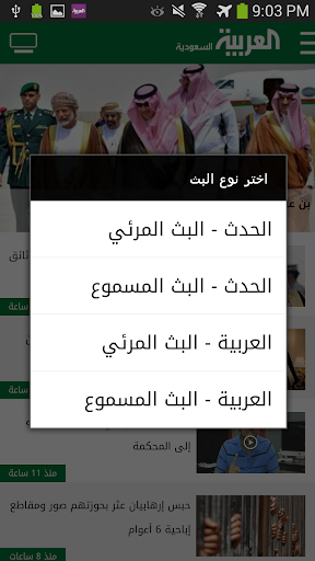 * Live streaming of Al Arabiya and Al Hadath News Channels with the option of audio only.