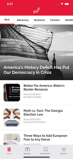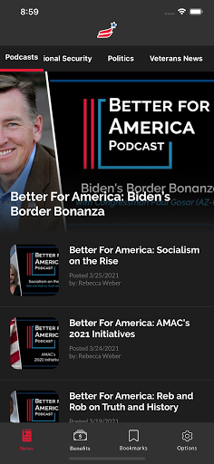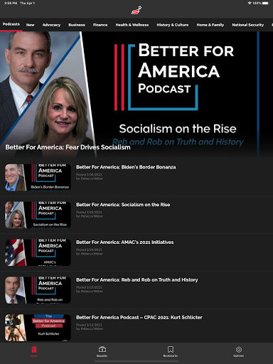 With your AMAC app, you gain access to the kind of news reporting the other media outlets won’t cover. AMAC’s News App delivers factual, breaking news on US politics, national security, business, history & culture and more! Read “up to date” real news and enjoy easy access to AMAC’s online library of videos and podcast, Better For America.