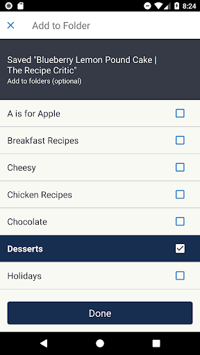Millions of users have already saved over 25 million recipes from thousands of food sites and blogs using Pinch It!™. Now it's available as an Android app making it even easier than ever to access your favorite recipes.