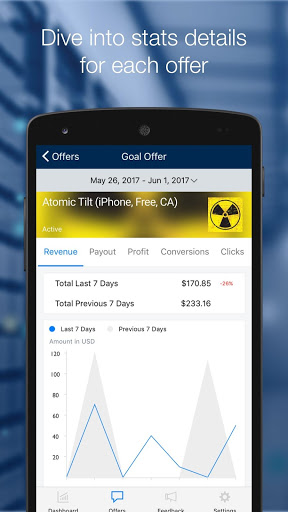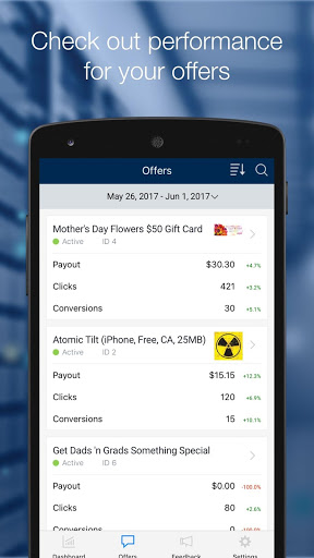 • View key stats for your network overall and individual offers