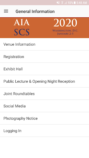 This is the official App for the Joint Annual Meeting of the Archaeological Institute of America (AIA) and the Society for Classical Studies (SCS). The Meeting is held over the first weekend in January each year. With this App you can view the entire program of academic sessions and events for both organizations and create a custom schedule of those you plan on attending. You can also browse the complete list of speakers, find your way with maps of the venues, receive updates on last minute changes, see what events are happening in real time, and explore the exhibit hall with an interactive map. Registered meeting attendees can also connect through direct messaging (meeting login required).