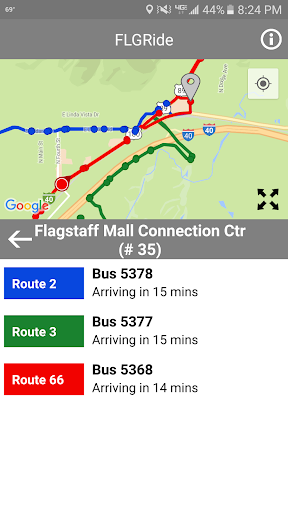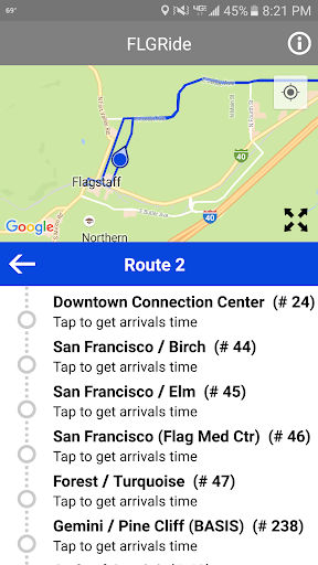 FLGRide is Flagstaff's new public transit real time arrival app, providing accurate arrival times for every Mountain Line bus stop.