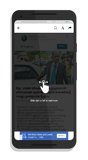 Dinakaran Mobile Apps provide you an opportunity to avail the newspaper's complete insight and also continuously updated articles throughout the world. This app brings the news paper and its content one step closer to the users enabling them to personalize and share their favorite news articles and read it from anywhere for free.