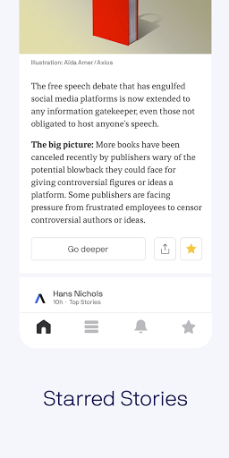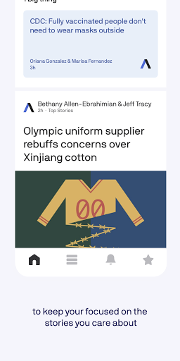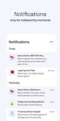 Our app provides a clean reading experience that puts the news you care about front and center. You start by following specific channels that correspond to topics that interest you. You can then access relevant content either in a single integrated feed or by hopping from channel to channel. And to make sure you stay on top of the news, Axios journalists will send you helpful notifications only for noteworthy moments.