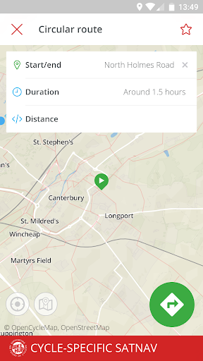 Choose ‘Quickest route' and you’ll be directed via roads (although not dual carriageways or motorways). Don’t care to mingle with motorised traffic? Choose ‘Quietest route' and the app will use OpenCycleMap to guide you along back-streets and, where available and sensible, cycle routes. The 'Balanced route' provides a good mix between the two extremes of 'Fastest route' and 'Quietest route'.