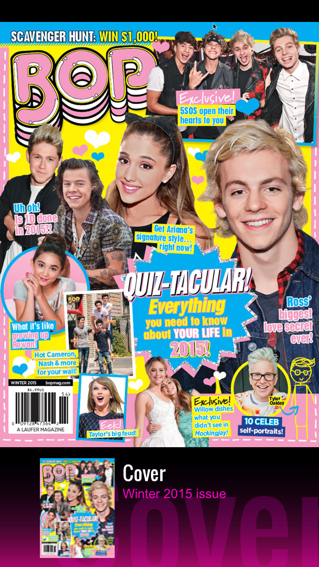 You are going to flip over BOP for the iPad, iPhone and iPod! Every month, you'll get the latest news, discover the truth about gossip and read the secret thoughts of today's hottest celebrities, like One Direction, Selena Gomez, Justin Bieber, Taylor Lautner and so many more. You'll take interactive quizzes... see private photos and videos you won't find in the magazine or online... draw and write in your magazines... discover hidden trivia... and it doesn't stop there! Even better, you'll get the issue the moment it comes out. Get our sister magazine, Tiger Beat, and double the amount of celebrity awesomeness every month!