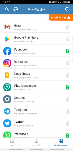 قفل برنامه ها یکی از بهترین برنامه ها جهت رمز گذاشتن برنامه هایی مثل تلگرام ، فیسبوک، لاین، واتس اپ، و تمام برنامه هایی که روی گوشیتون وجود داره. قفل برنامه ها سازوکاری مشابه برنامه های Applock دیگر داشته و در بسیار موارد بهتر از سایر برنامه های مشابه عمل می کند.