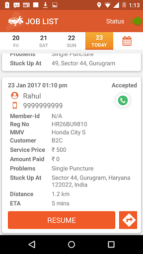 CarDekho Roadside Assistance is a 24x7 emergency service which is offered in case of breakdown of a vehicle. If you are a registered service provider with CarDekho Roadside Assistance, you can download the app and start managing all your service requests through the app. The app provides features to accept/decline service requests, view service/customer details, navigate to customer location.