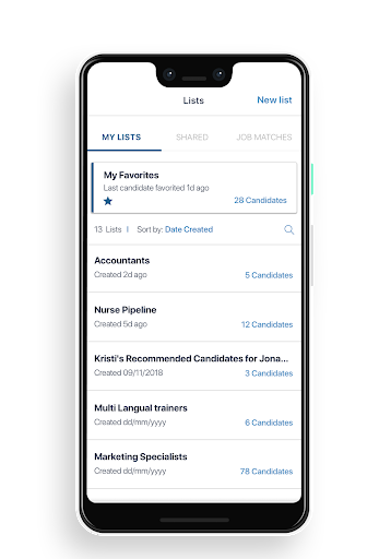 Easily search for talent from the home screen, then add their profiles to the lists you've created on your desktop.