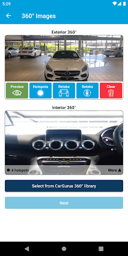 The CarGurus 360° app is designed for dealers to create stunning 360° exterior and interior spins of their vehicles for listing on VDPs.