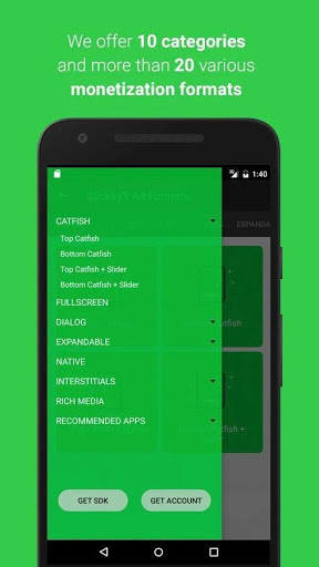 Clickky’s mobile monetization formats are available for both Android applications and mobile-optimized websites. Clickky provides publishers with format customization options which might be particularly interesting for those who are interested in running native ads on their Android apps or websites.