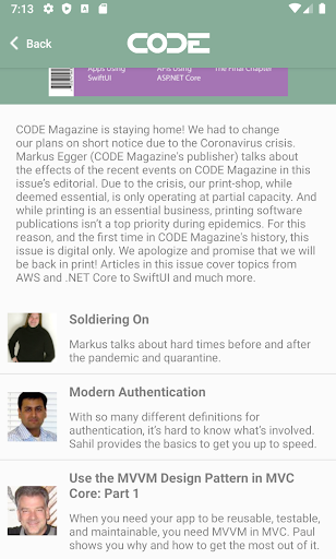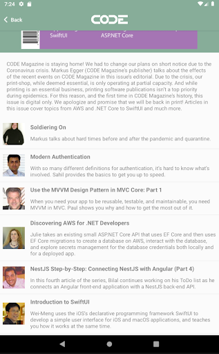 CODE Magazine is the leading independent software developer publication. It is published both in print and digital version. It focuses on topics such as web development, mobile development, cloud development, desktop development, database development, and more. It covers languages and platforms such as .NET, C#, HTML, JavaScript, Android, and many more.