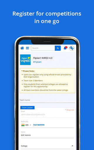 Dare2Compete, known as D2C, is a global platform that provides opportunities to students and professionals across all domains to engage with institutes and companies by participating and competing in intellectual gamified engagements like Innovation and Case Challenges, Hackathons, Quizzes, Business Simulations, etc. to showcase their talent and get hired, recognized and rewarded.