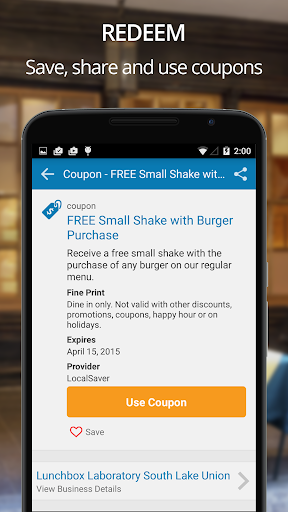 LocalSaver is your best source for coupons and deals from all types of local businesses. Feeling hungry and need a nearby restaurant? Find a coupon on LocalSaver. Standing on the side of the road with a fender bender? Find a deal for the nearest auto repair shop on LocalSaver. While you’re at it, find a discount for an attorney too. Easily find, save, and redeem great offers from thousands of neighborhood businesses.