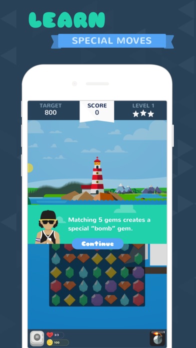 Swap and match coloured Gems and gain points by matching three or more in this addictive game. Journey through the island, unlocking new locations and taking part in exciting challenges to test your skills.