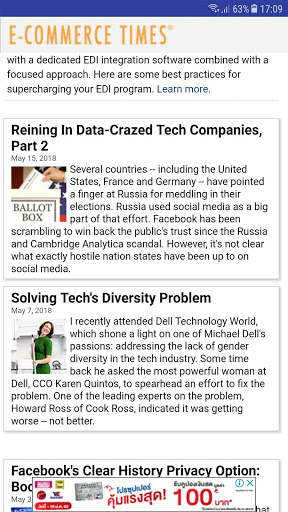 E-Commerce Times works with Advertising technology companies such as Flite, SiteScout, Simpli.fi, Rocket Fuel, Brandscreen, RadiumOne, Evidon, Chango, Neustar AdAdvisor, X Plus One, Mediaplex, Conversant, Google Publisher Tag, Yield Manager, Yahoo Publisher Network, Tacoda, eXelate, BlueKai, AOL-Time Warner Online Advertising, Advertising.com, Turn, Accuen, Media Innovation Group, AppNexus, PointRoll, Flashtalking, Burst Media, Bizo, DoubleClick.Net, Atlas, Google Adsense, Marchex, Industry Brains, Collective Media, Videology, DoubleVerify, Aggregate Knowledge, LucidMedia, MyBuys, Integral Ad Science, The Trade Desk, Yahoo Small Business, AdRoll, Adap.TV, MLN Advertising, AppNexus Segment Pixel, IponWeb BidSwitch, Digilant, AudienceScience, Upfront Digital Media, Openads/OpenX, Connexity, Adconion, MyBuys MyAds, Magnetic, DoubleClick Bid Manager, BlueKai DMP, Facebook Exchange FBX, ADTECH, ContextWeb, Adition, VINDICO, Pubmatic, Rubicon Project, Index Exchange, Dstillery, Criteo, Tapad, DemDex, Drawbridge, RhythmOne, AcuityAds, TagCade, Prebid, Forensiq, SpotXchange, Adomik, RealVu, Amazon Associates, ShareASale, GumGum, Yahoo Ad Sync, AdZerk, Amazon Reseller, Google Direct, OpenX Reseller, ContextWeb Reseller, AppNexus Reseller, Ads.txt, LKQD Reseller, 33 Across Direct, SpotXChange Reseller, PubMatic Reseller, Criteo Reseller, AdFrontiers Direct, Google Reseller, RubiconProject Reseller, ORC International Reseller, Comet Cox Media Reseller, AOL Reseller, IndexExchange Reseller, Converstand Media Direct, Facebook Custom Audiences, Google Adsense Asynchronous, Google AdSense Integrator, Q1Connect Reseller, Adobe Audience Manager Sync, Eyeota, Less than 5 Ads.txt, Less than 5 DIRECT Ads.txt, FLoC, Ad Dynamix, Commission Junction, BlueStreak, Real Media Group, Open AdStream, Madison Logic, Audience2Media, Google Remarketing.