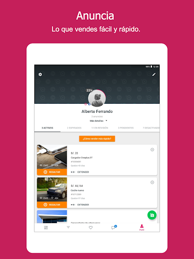 * Reorganizamos la cuenta para mostrar su información de perfil, anuncios, productos, y preferencias.