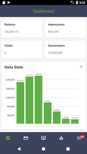 With the brand new EroAdvertising Dashboard Panel application you can see reliable and detailed Advertiser and Publisher statistics and all other important information at a glance.