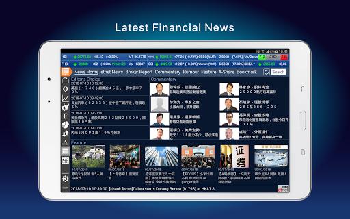 ET Net provides cross platform products, offering latest HK market information, Real-time Futures quote, After Hours Futures Trading quote, investment portfolio and chart analysis while on the move. ET Net real-time news and commentaries helps you to keep track market trend and develop your investment strategies.