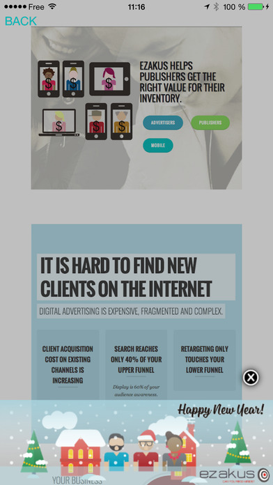 This free app displays Ad content samples which has been coded with the Ezakus Mobile SDK.
