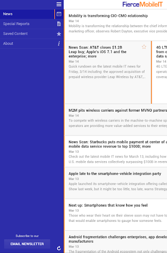 Every business day, FierceMobileIT updates Enterprise IT readers on the mobile news you need to know. Stay on top of critical developments in smartphones, tablets, operating systems, mobile management technologies, security and more. Our editors discuss the top industry trends and topics with in-depth features on MobileIT, featuring interviews with IT directors and mobility experts.