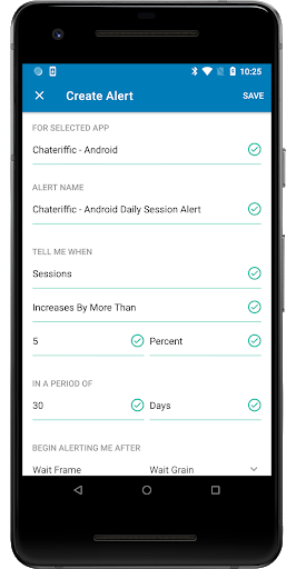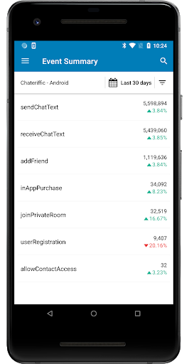 Alerts: Create custom alerts that push notification to your phone when app metrics change up or down by a designated amount.