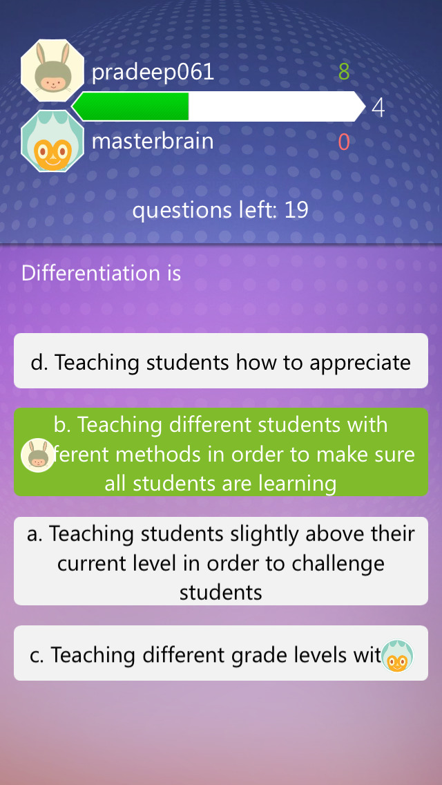 Work together to create education quizzes, challenge your friends, compete against others or simply challenge yourself.