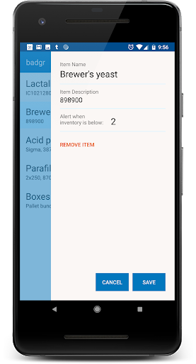 badgr is a basic inventory management app that allows easy stock-keeping of expendable resources and notifies when stock is low.