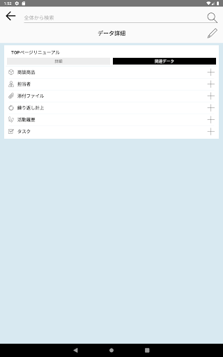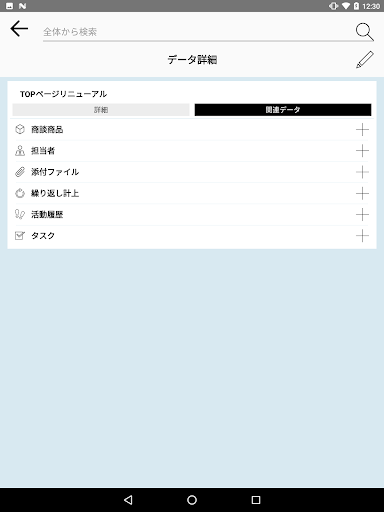 検索ボックスに検索キーワードを入れることで、システム全体からデータを検索して、素早くアクセスすることができます。蓄積されたデータをどこでも有効活用できます。