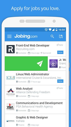 Finding a local job from your phone has never been easier. The Jobing.com Mobile App gives you the tools to focus on the jobs you’ll love, in the location of your choosing. Find, save, and apply to local jobs while hiding others. Easily create a 30 second Cover Video showcasing your personality and receive Alerts when new jobs become available.