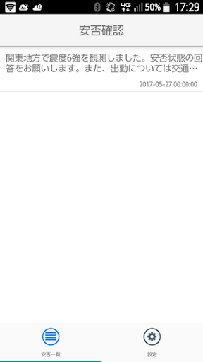 自然災害や緊急事態発生時に管理者から発信された安否確認を、PUSH通知機能を使用して利用者へ通知します。また通知を開くことで安否状況を回答できます。