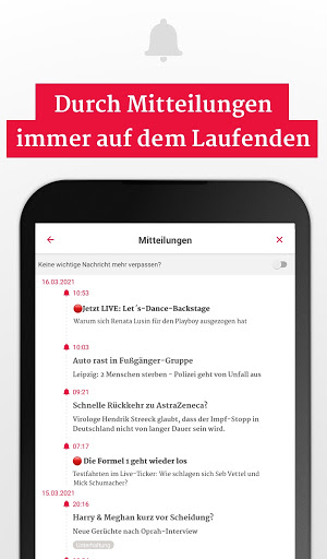 Die aktuellen Nachrichten immer griffbereit auf Deinem Handy – jederzeit & überall über Eilmeldungen sofort informiert werden. Mit der RTL-App verpasst Du keine wichtigen Informationen mehr. In unserem Mitteilungscenter hast du alle Push-Benachrichtigungen im Überblick und siehst alle wichtigen Mitteilungen auf einen Blick.