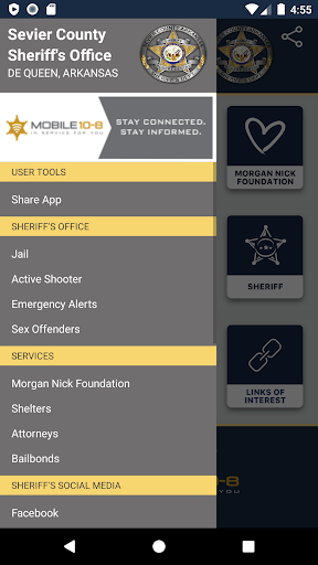 Stay informed of the latest events directly from the Sevier Country Sheriff’s Office in De Queen, Arkansas. This app provides direct access of recent arrests and the inmate roster. As well as access to Shelters, 24 Hour Crisis Hotlines, Emergency Alerts and much more.