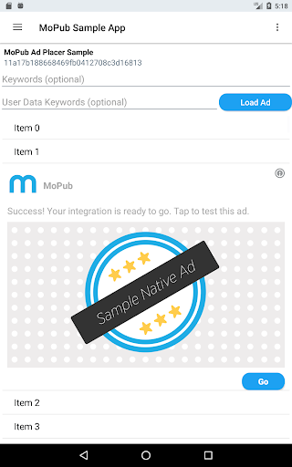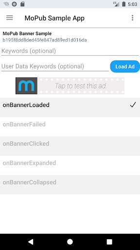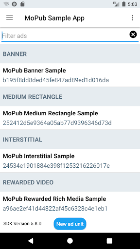 The MoPub Sample App allows you to view and test various ad formats, including: