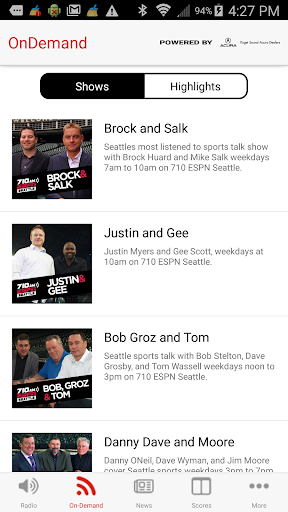 A re-imagined listening experience for 710 ESPN Seattle fans. Listen to live talk shows, podcasts, on-demand moments, read the latest news and watch in-studio video.