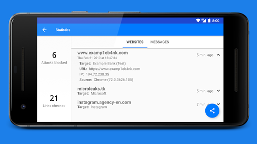 Although major desktop web browsers have effective anti-phishing protection, the same is not true of mobile equivalents. The Netcraft app allows you to benefit from phishing protection on your mobile device, taking advantage of Netcraft's constantly updated phishing site feed. Over 95 million phishing sites have been detected and blocked by our community to date [January 2021].