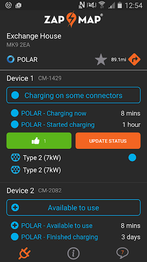 - Zap-Home / Zap-Work - add your Home or Work charger to Zap-Map to enable peer to peer sharing for free or a small charge. Ability to add photos and directly edit information held.