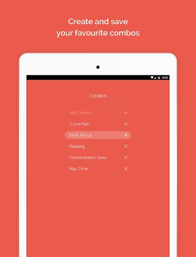 Mix different sounds and create your perfect sound ambience tailored to your personal need and taste. Activate one or more sounds and adjust the volume slider to create an always different and pleasing sound environment. With Noisli you can boost your focus and enhance your productivity or just lay back, listen, and enjoy falling asleep.