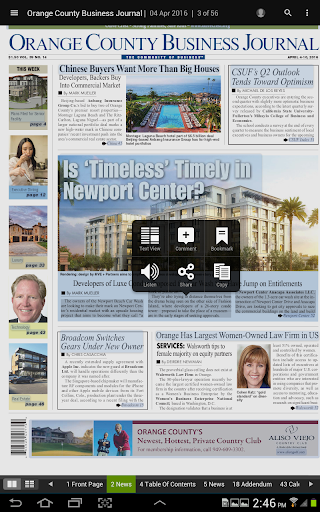 Complete digital replicas of the Orange County Business Journal’s weekly print editions ... delivered straight to your device. You have the choice to automatically download editions to read at your leisure – anytime, anywhere, even without an internet connection.