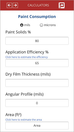 In-app calculators determine paint and abrasive consumption, coating thickness and application efficiency, nozzle and airless tip selection, area measurements and unit conversions.