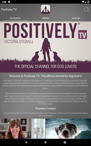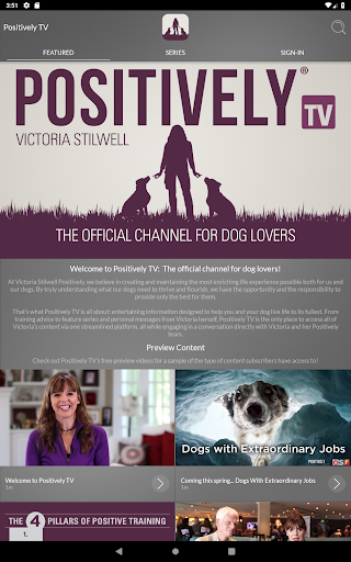 Get exclusive access to dog training tips, advice and features from world-renowned dog trainer and behavior expert Victoria Stilwell (It's Me or the Dog), with entertaining information designed to help you and your dog live life to its fullest. From training advice to feature series, Positively TV is the only place to access all of Victoria’s content via one streamlined platform, all while engaging in a conversation directly with Victoria and her Positively team. Join us as we continue towards our mission of changing dogs’ lives… Positively.
