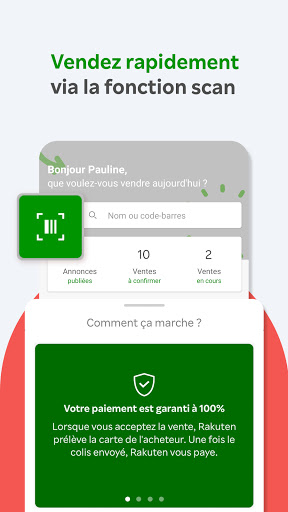 Grâce à Rakuten, faites du tri, gagnez de l’argent, et consommez plus responsable : vous avez des produits dont vous ne vous servez plus ? Vendez-les ! ♻️ Grâce à la fonctionnalité de scan de code-barre, la mise en vente est plus rapide et simple que jamais. Les annonces sont gratuites et illimitées, l’envoi gratuit, et les paiements sécurisés, n’attendez-plus.