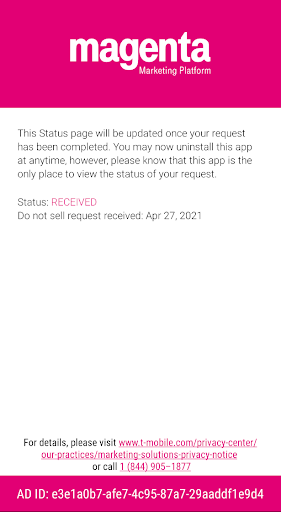 Using this app, you can see who, what, and how data has been collected about you. Additionally, you can request to not sell data about your device or delete all known data about your device from companies participating in the Magenta Marketing Platform.