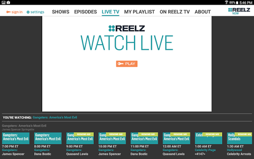 REELZ NOW® is an on-demand online video service offered through participating TV providers that gives you the freedom to watch TV streaming live and access to full episodes of your favorite REELZ shows when and where you want to watch them.