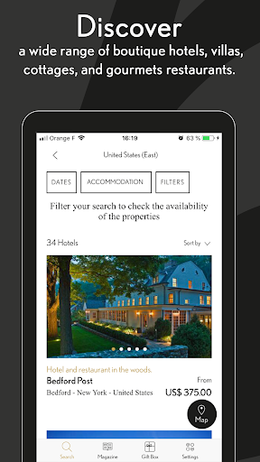 • Find the nearest Relais & Châteaux properties by geolocating.