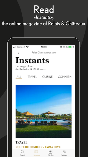 The Relais & Châteaux application offers you a complete immersion in our hotels and restaurants and allow you to discover our hosts, chefs and the unforgettable experiences that await you, all in the blink of an eye.