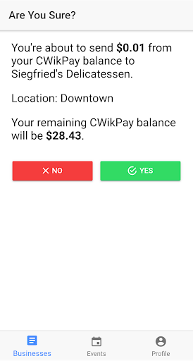 CWikPay is the next step in the evolution of multi-merchant balance systems. Instead of presenting a card for redemption, a consumer can use the CWikPay mobile app to initiate the transaction. Our system will notify the merchant that a payment has been sent.